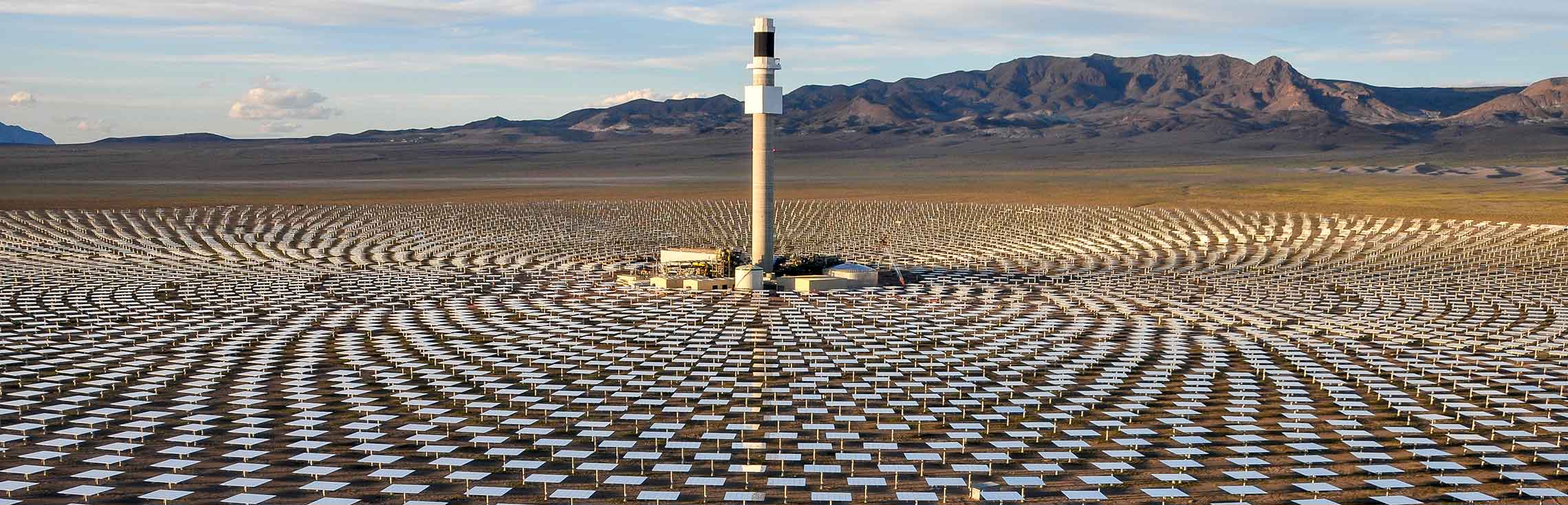 SolarReserves Crescent Dunes CSP Project, near Tonopah, Nevada, has an electricity generating capacity of 110 MW. Photo from SolarReserve