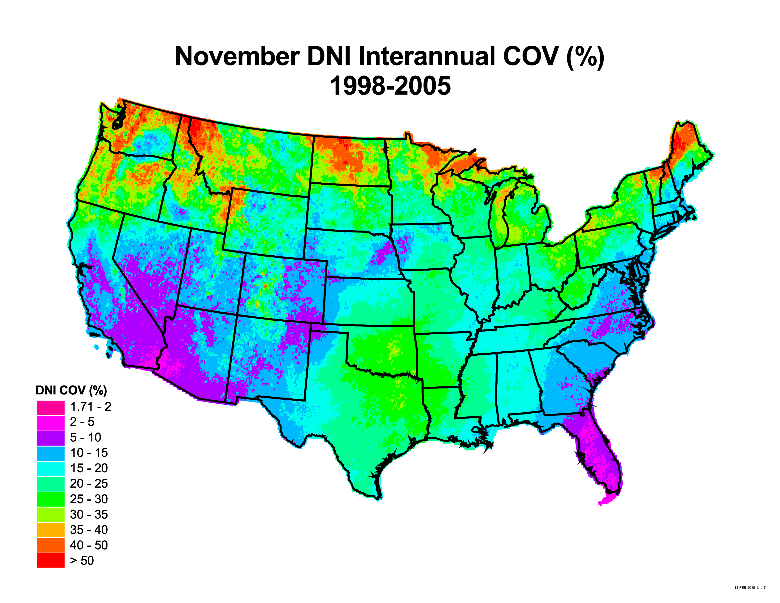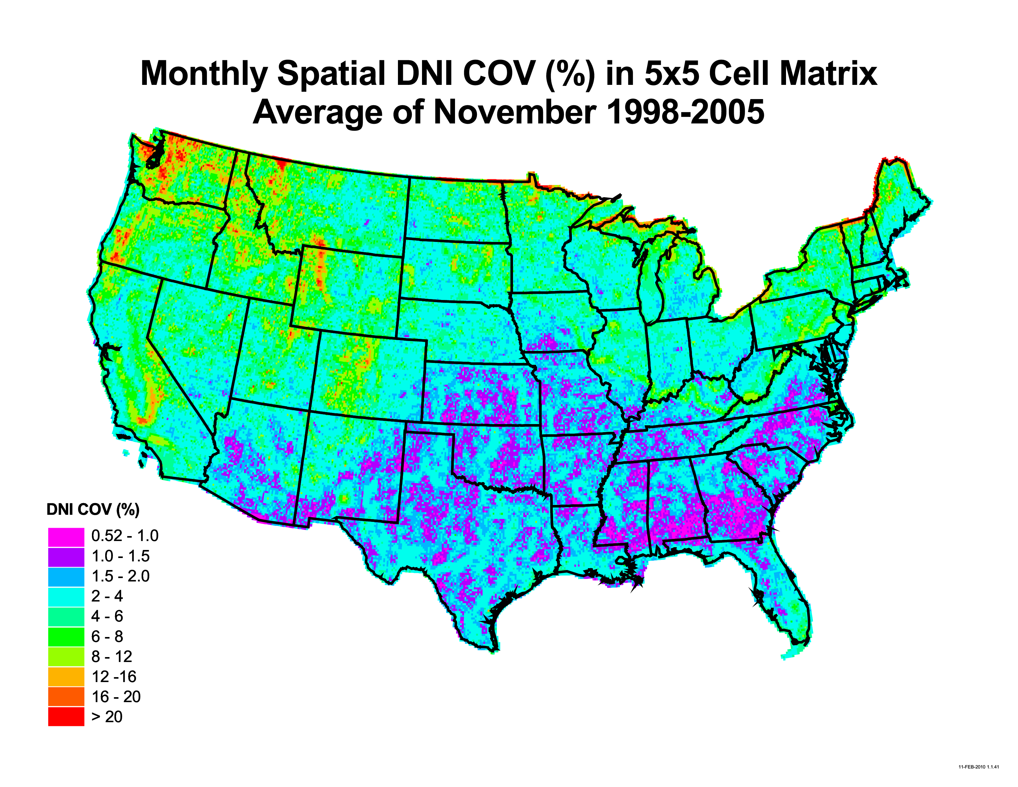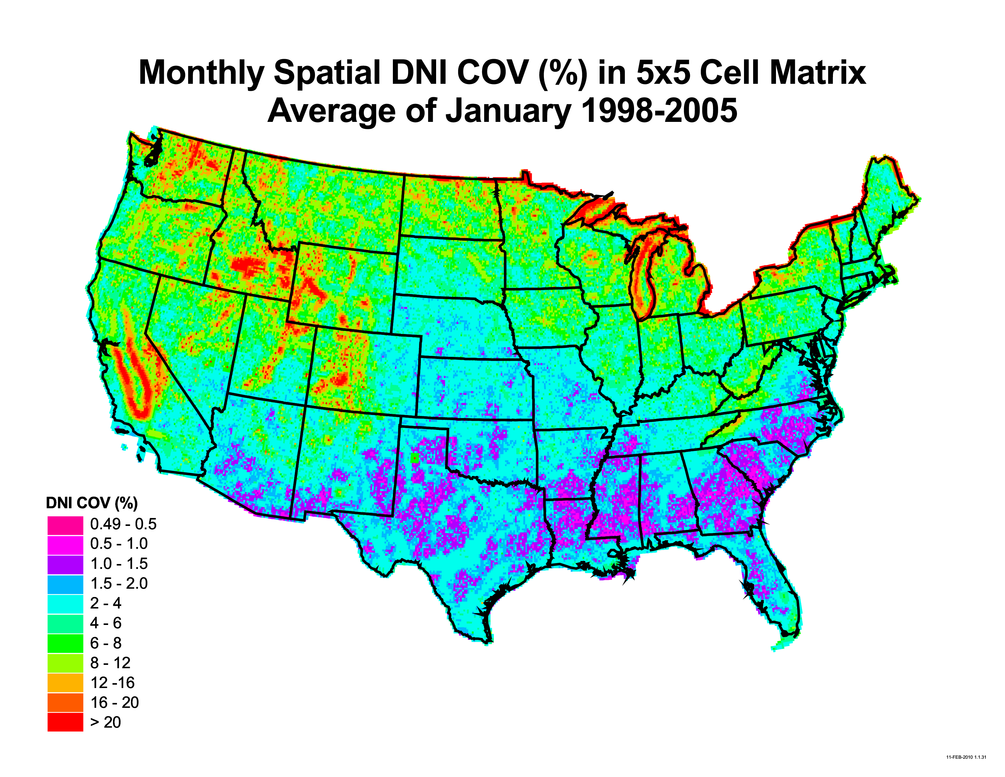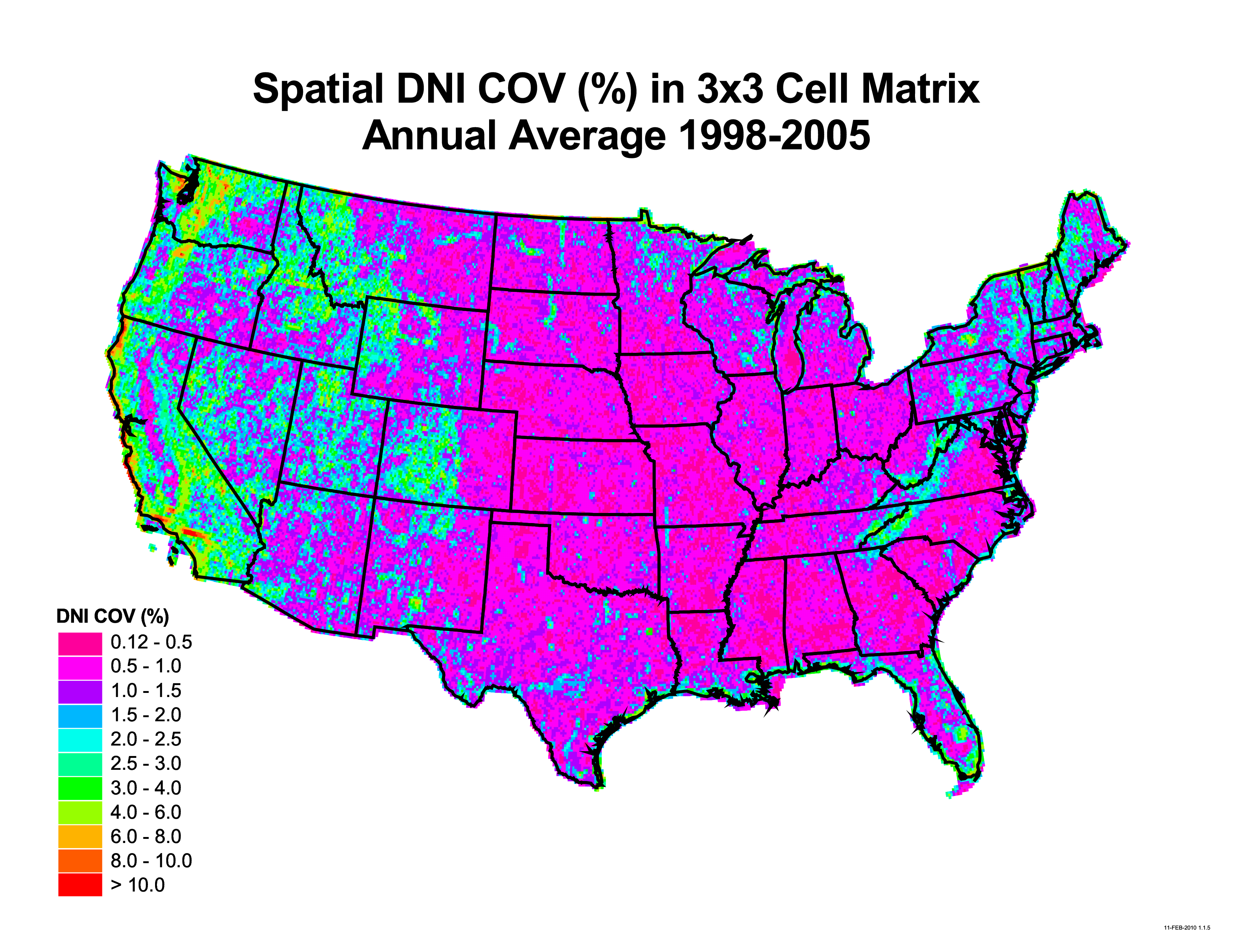 The Solar Resource Variability collection includes data and maps that demonstrate the variability in time and space of the solar resource across the United States from 1998 to 2005.