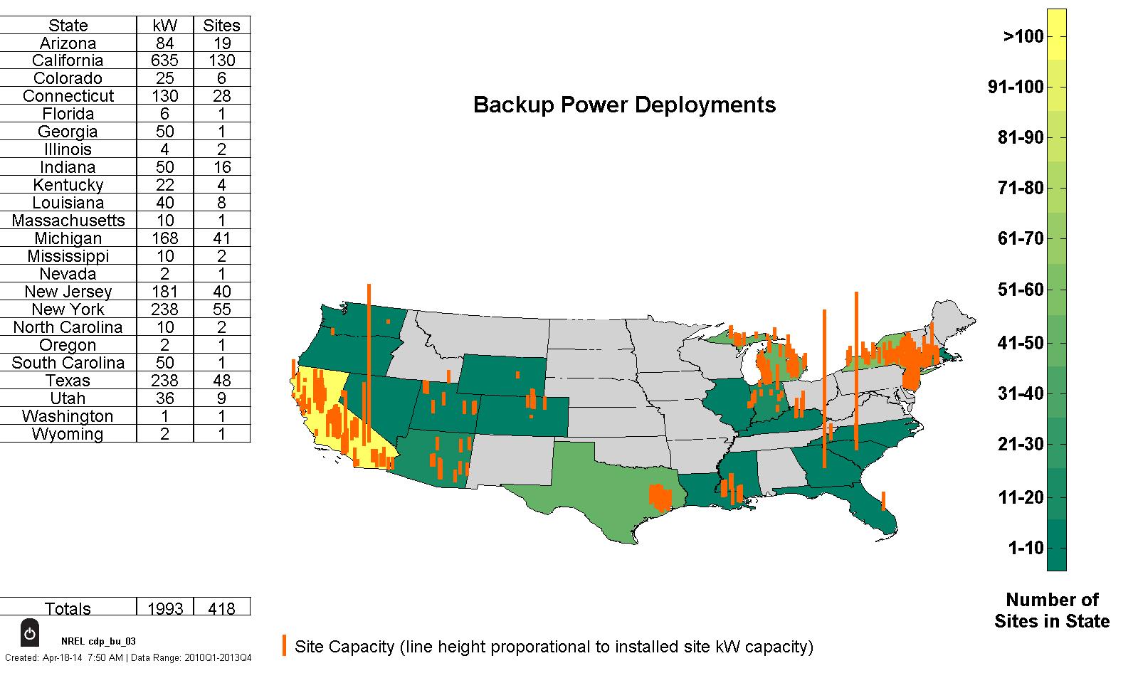 Backup Power Fuel Cell Systems Deployed, CDP BU 01, 4/6/2014