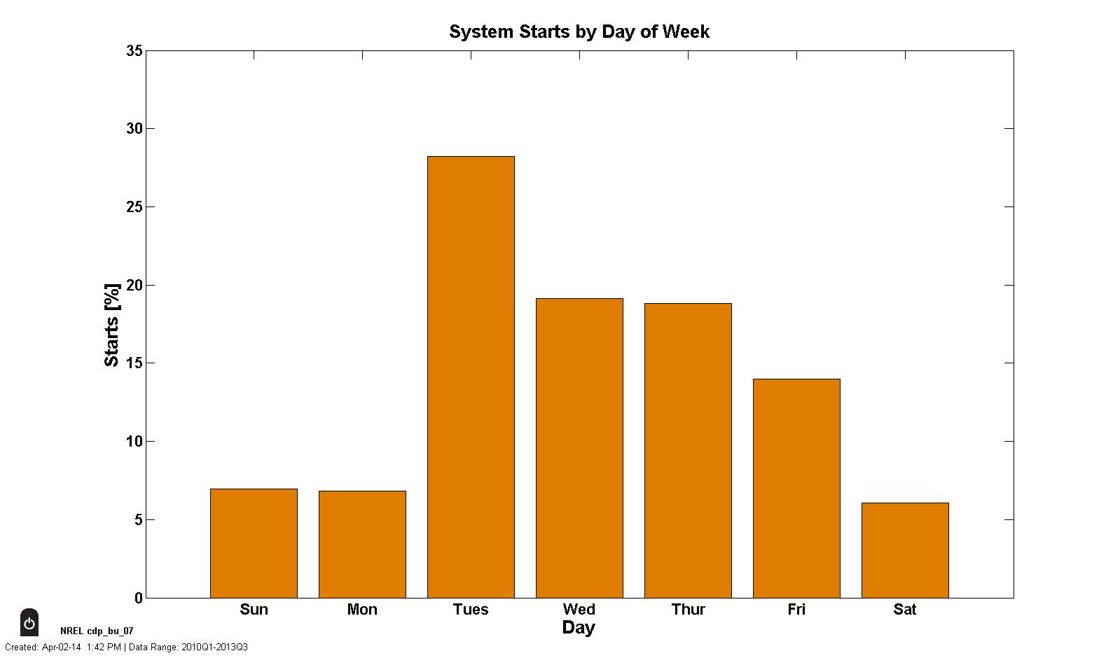 Fuel Cell System Starts by Day of Week, CDP BU 07, 4/2/2014