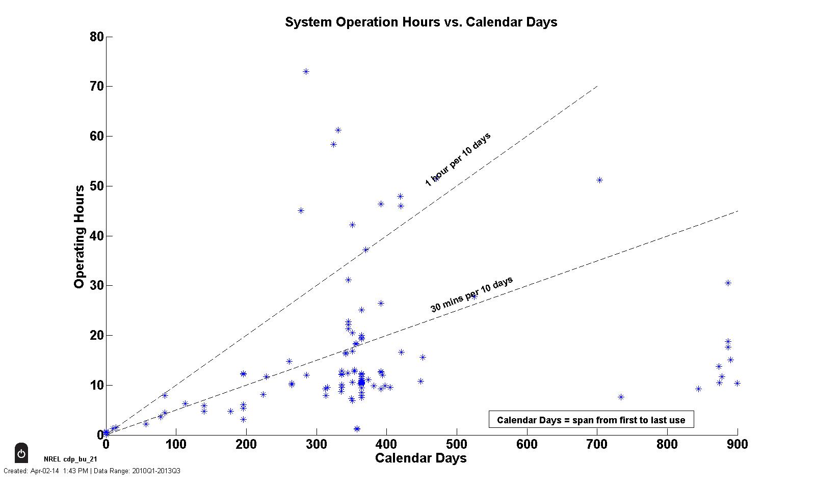 System Operation Hours vs. Calendar Days, CDP BU 21, 4/2/2014