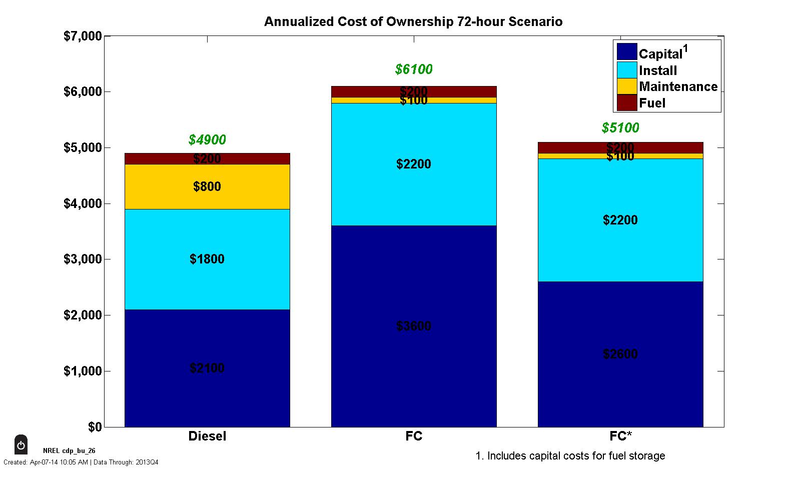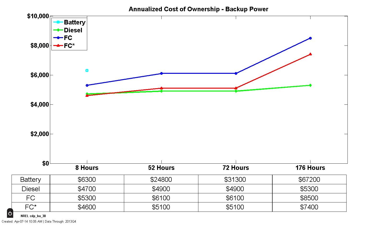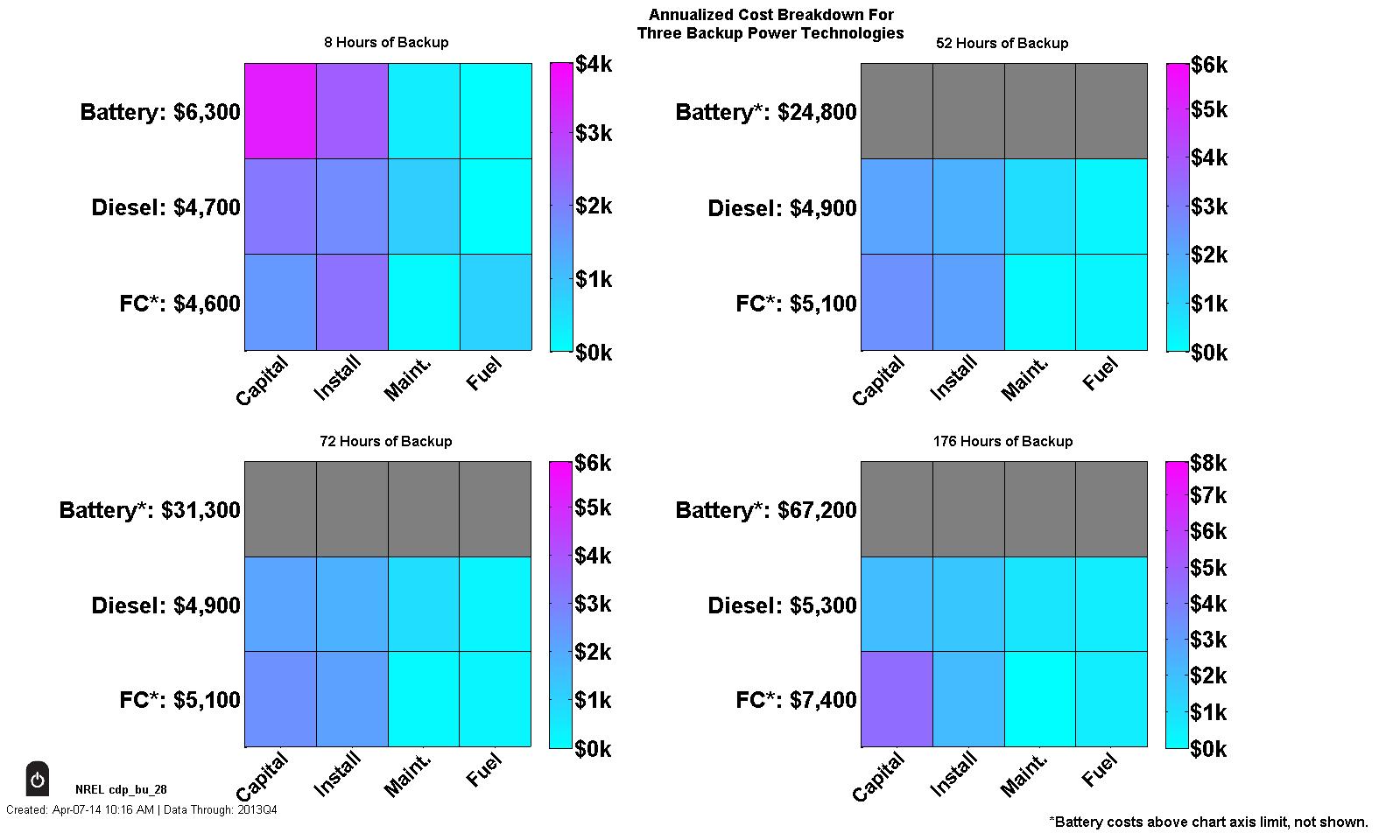 Annualized Cost Breakdown for Three Backup Power Technologies, CDP BU 28, 4/7/2014
