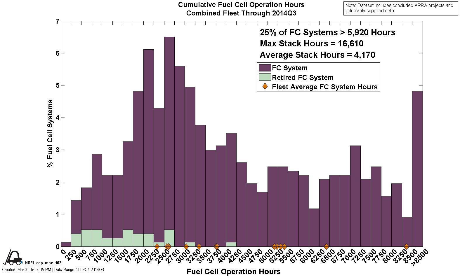 Fuel Cell Operation Hours and Durability, CDP ARRA MHE 39, 3/28/2012