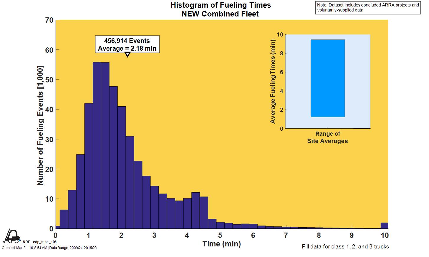 Histogram of Fueling Times, CDP MHE 106, 3/31/2016