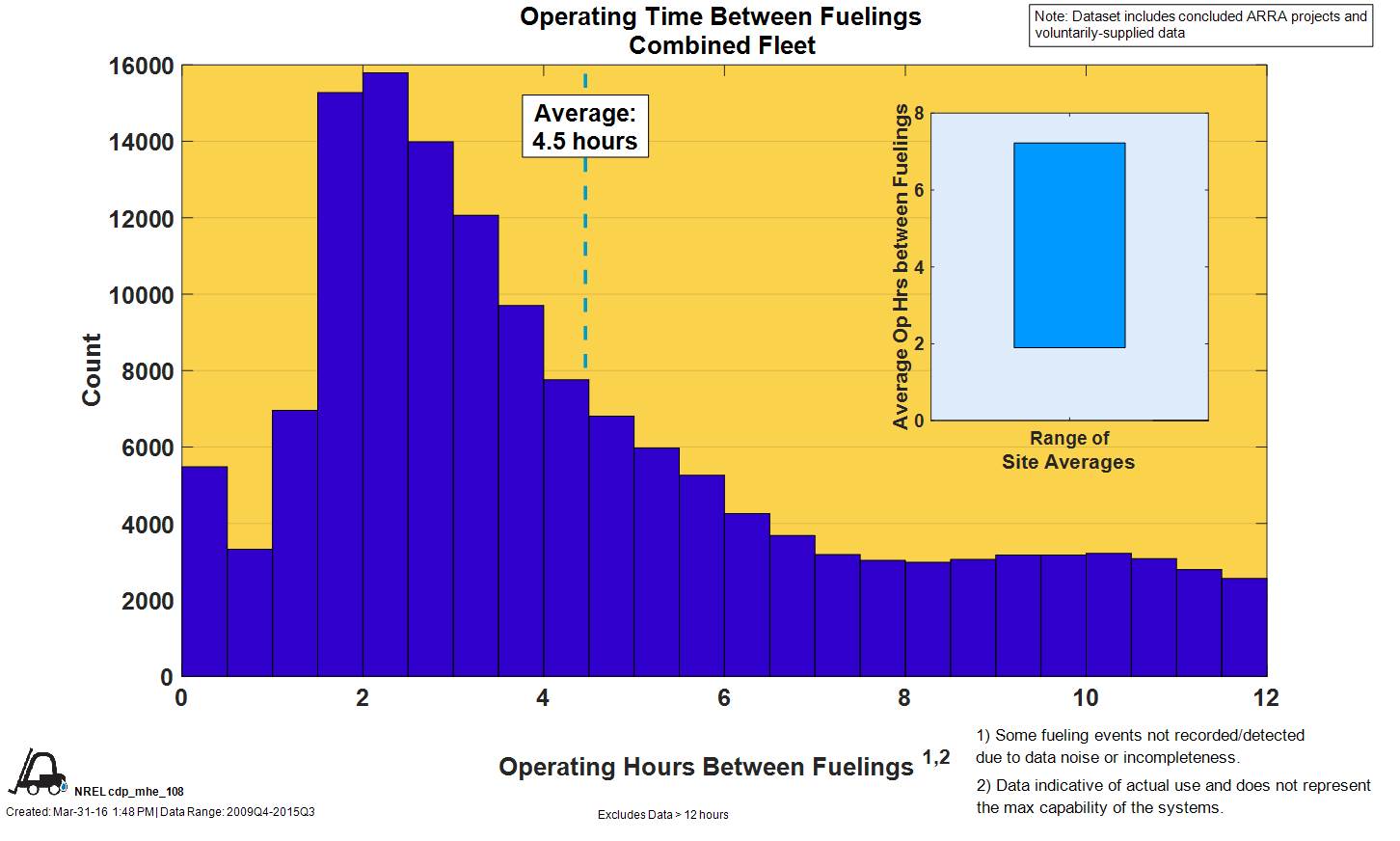 Operation Time between Fueling, CDP MHE 108, 3/31/2016