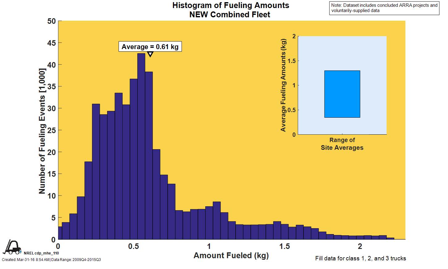 Histogram of Fueling Amounts, CDP MHE 110, 3/31/2016