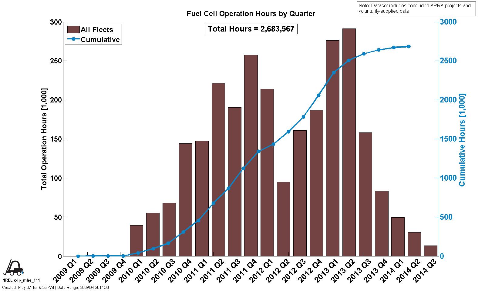 Fuel Cell Operation Hours by Quarter, CDP MHE 111, 5/7/2015