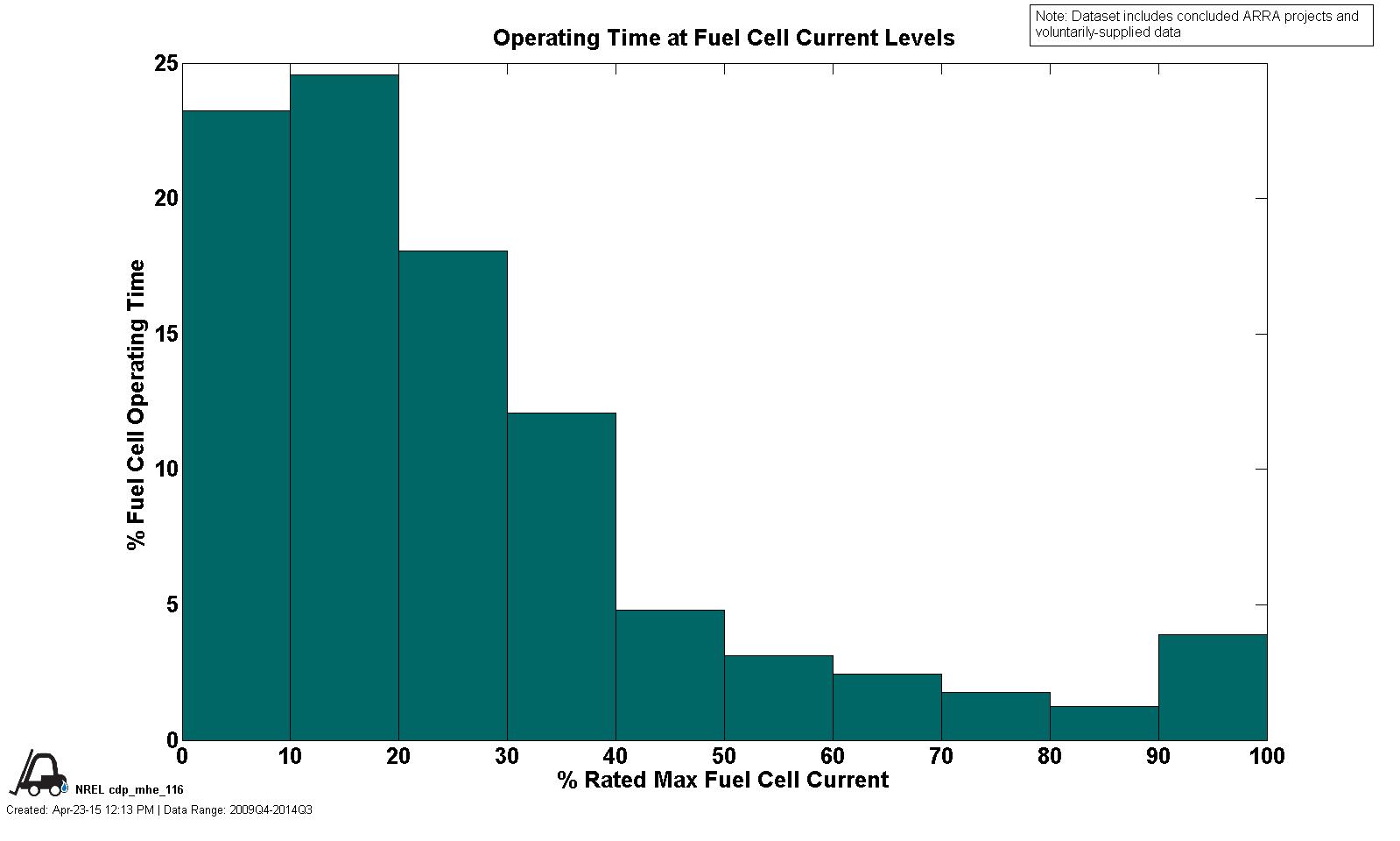 Operating Time at Fuel Cell Current Levels, CDP MHE 116, 4/23/2015