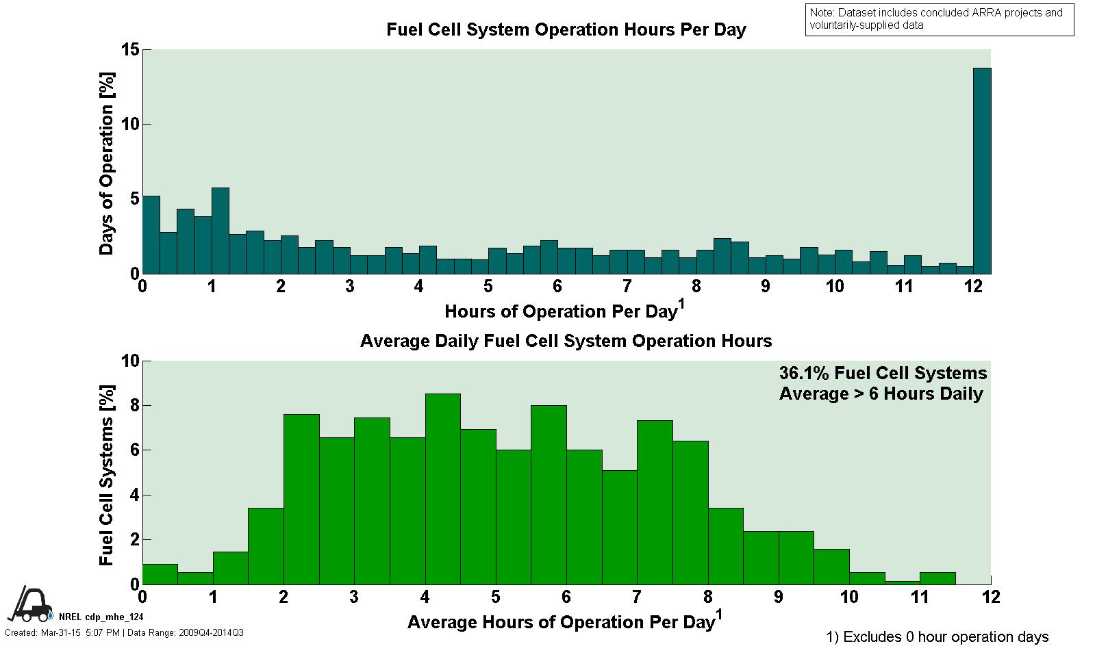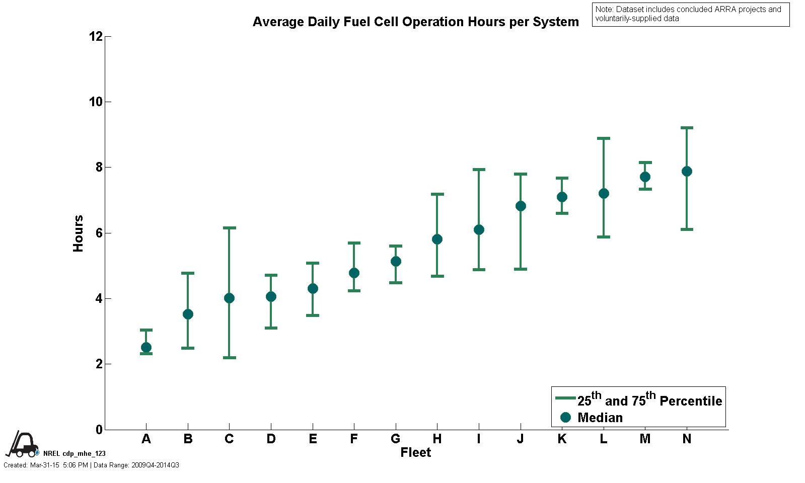 Average Daily Fuel Cell Operation Hours per Fleet, CDP MHE 123, 3/31/2015