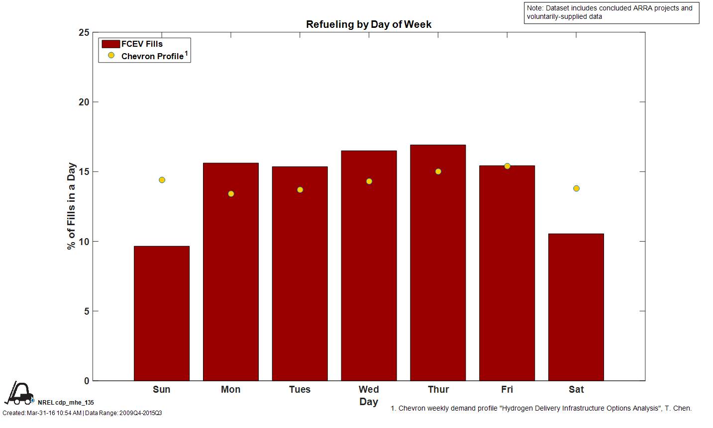 Refuel Events by Day of Week, CDP MHE 135, 3/31/2016