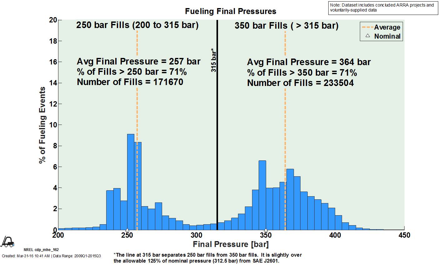 Final Pressure of Hydrogen Fills, CDP MHE 162, 3/31/2016