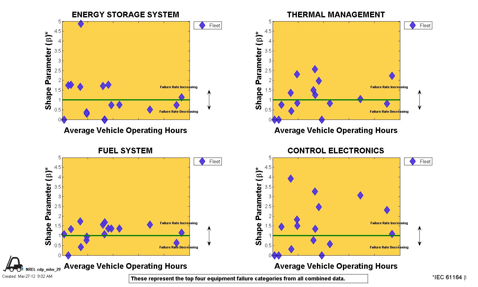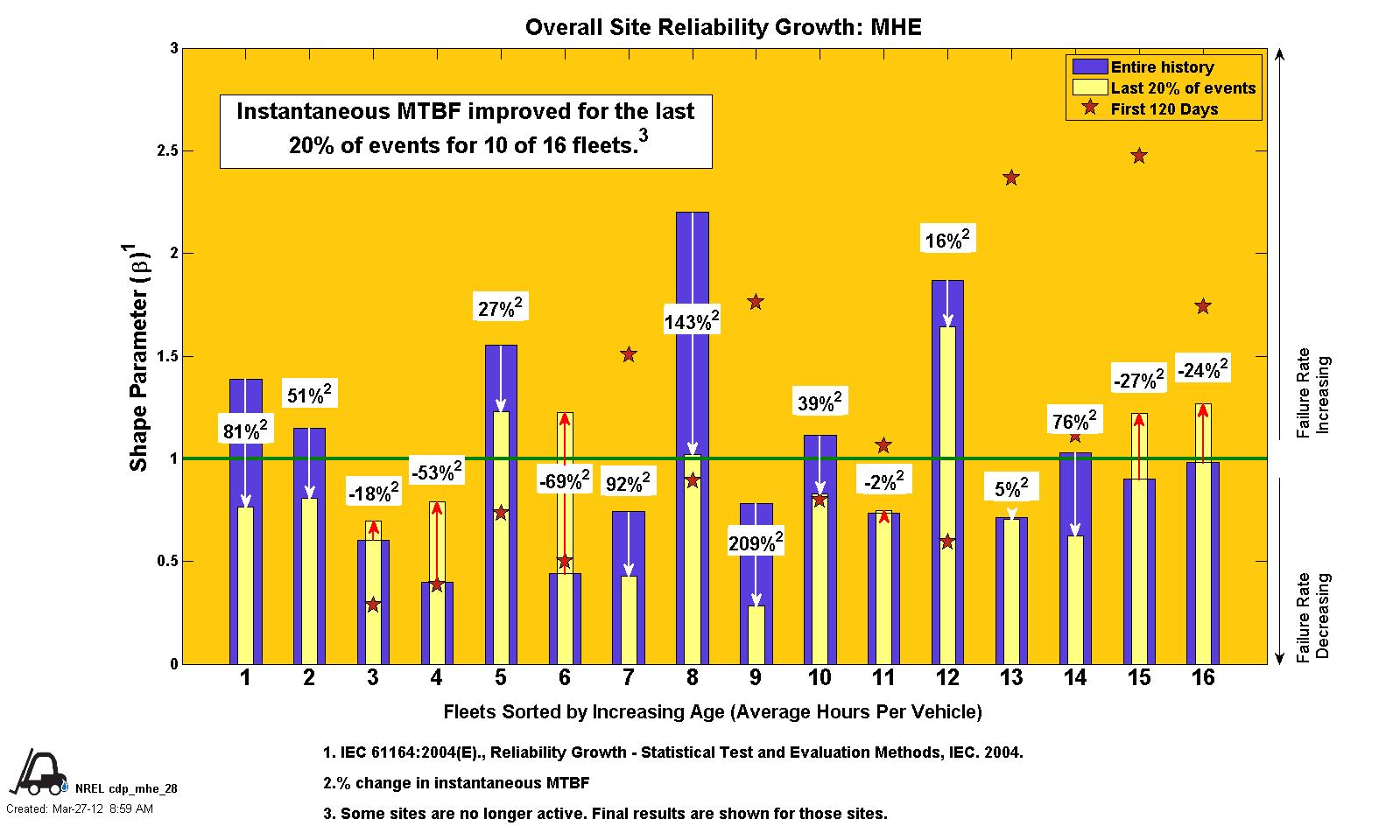 Fleet Fuel Cell System Reliability Growth by Category, CDP MHE 29, 3/27/2012