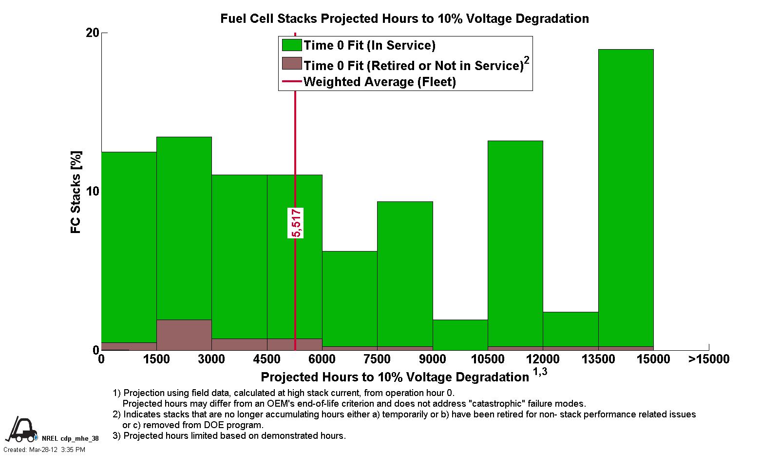 Fuel Cell Durability Histogram, CDP ARRA MHE 38, 3/28/2012