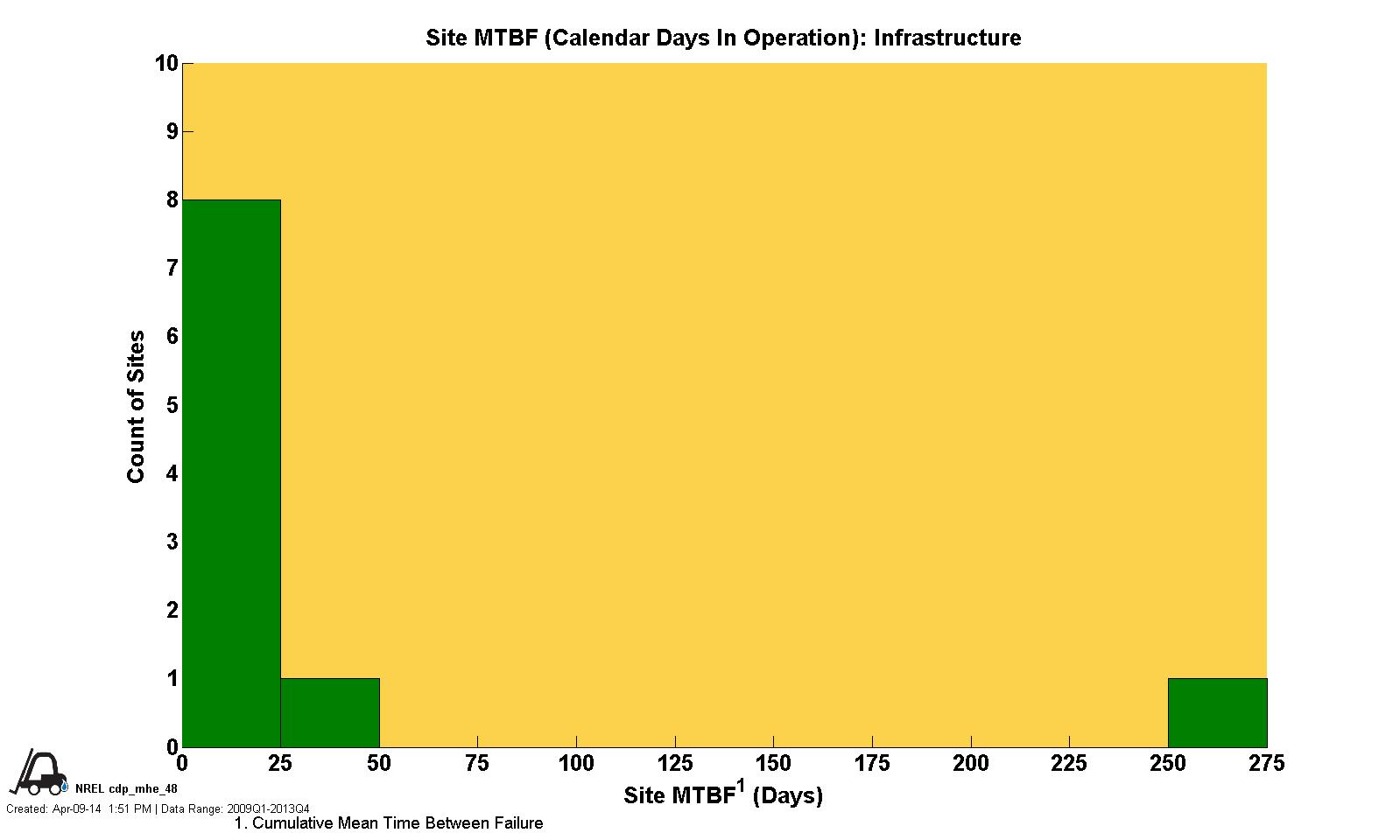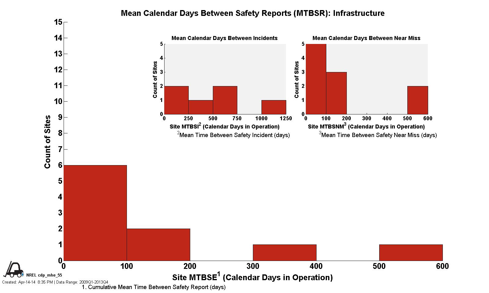 Infrastructure Mean Time Between Safety Reports, CDP MHE 55, 4/14/2014