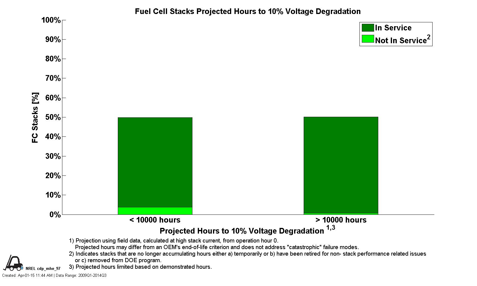 Fuel Cell Stacks Projected Hours to 10% Voltage Degradation, CDP MHE 97, 4/1/2015