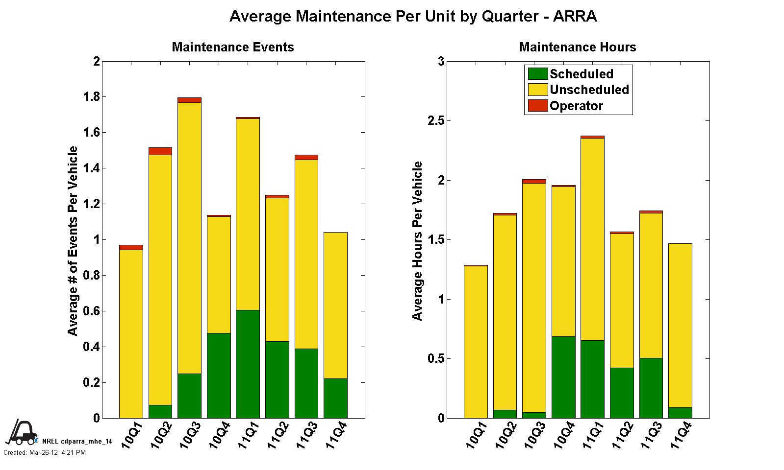 Fuel Cell Maintenance by Quarter, CDP ARRA MHE 14, 3/26/2012