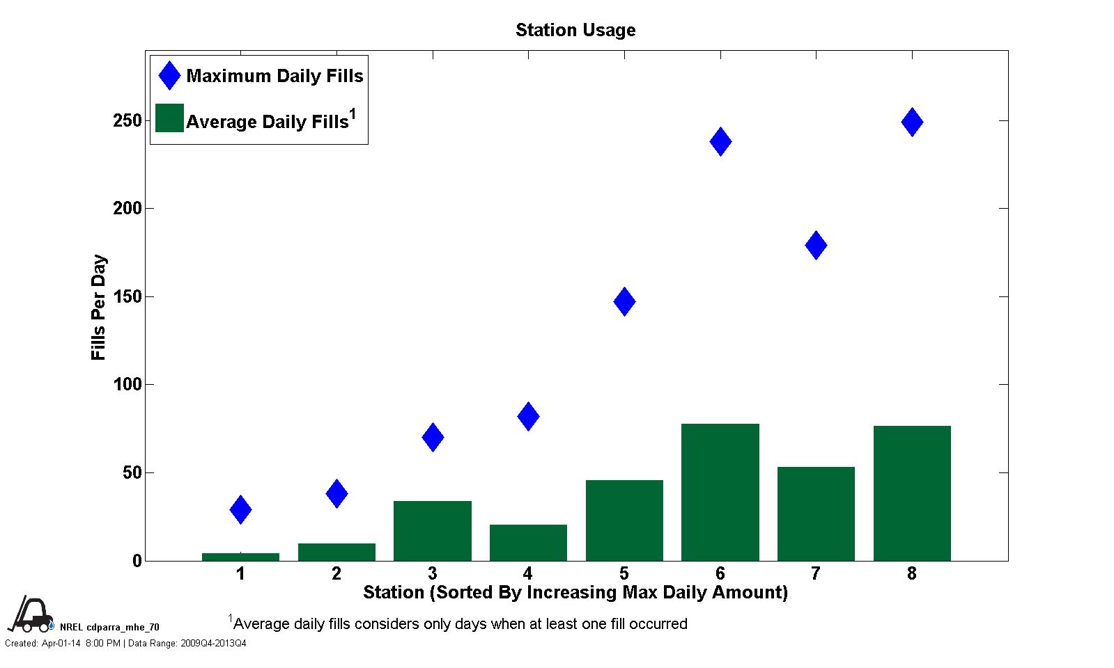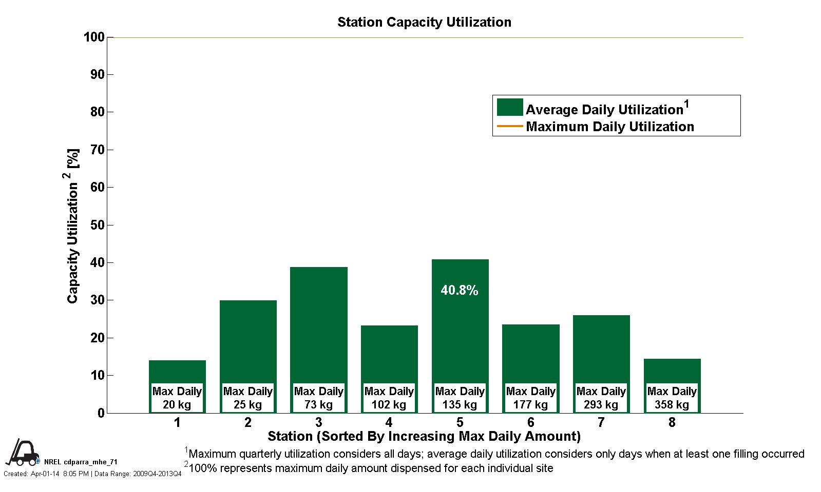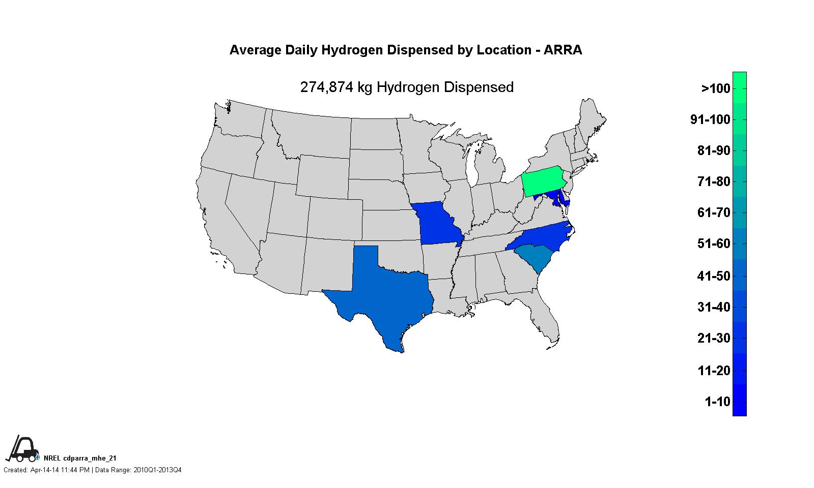 Average Daily Dispensed Hydrogen Map, CDP ARRA MHE 21, 4/14/2014