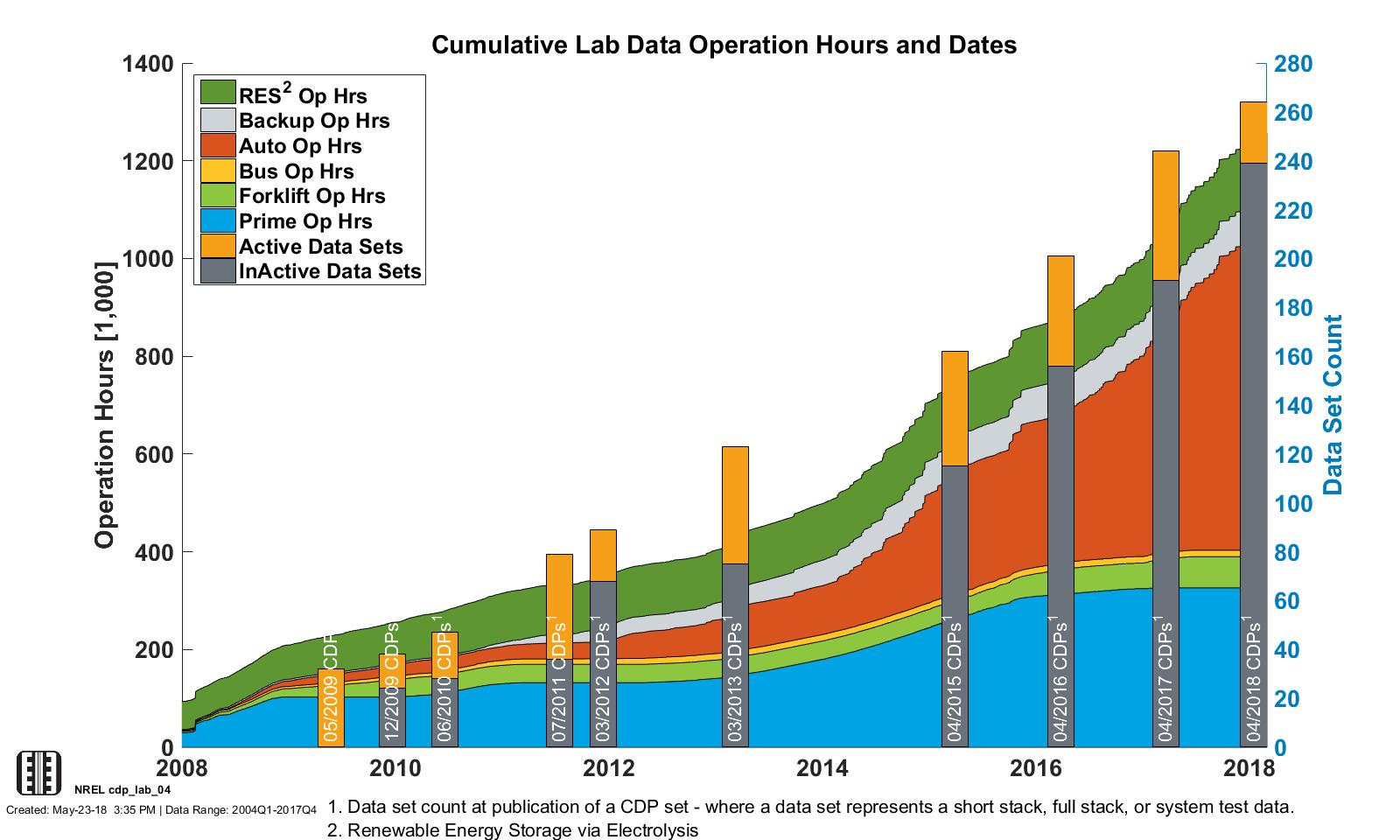 CDP LAB 03, 5/23/18 - Cumulative Operation Hours by Application and Number of Data Sets