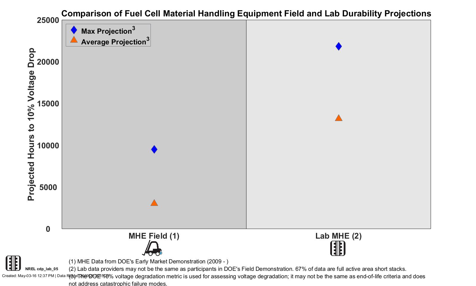 - Lab Data Hours Accumulated and Projected Hours to 10% Stack Voltage Degradation