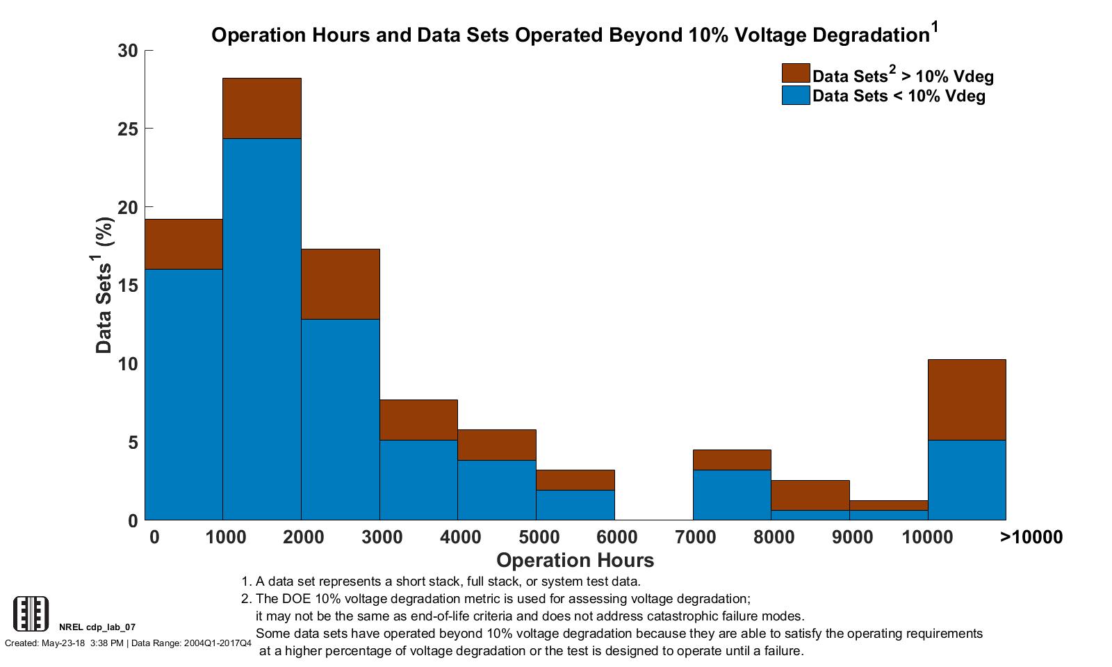 CDP LAB 06, 5/23/18 - Data Set Operation Hours and Percentage of Data Sets That Have Passed 10% Voltage