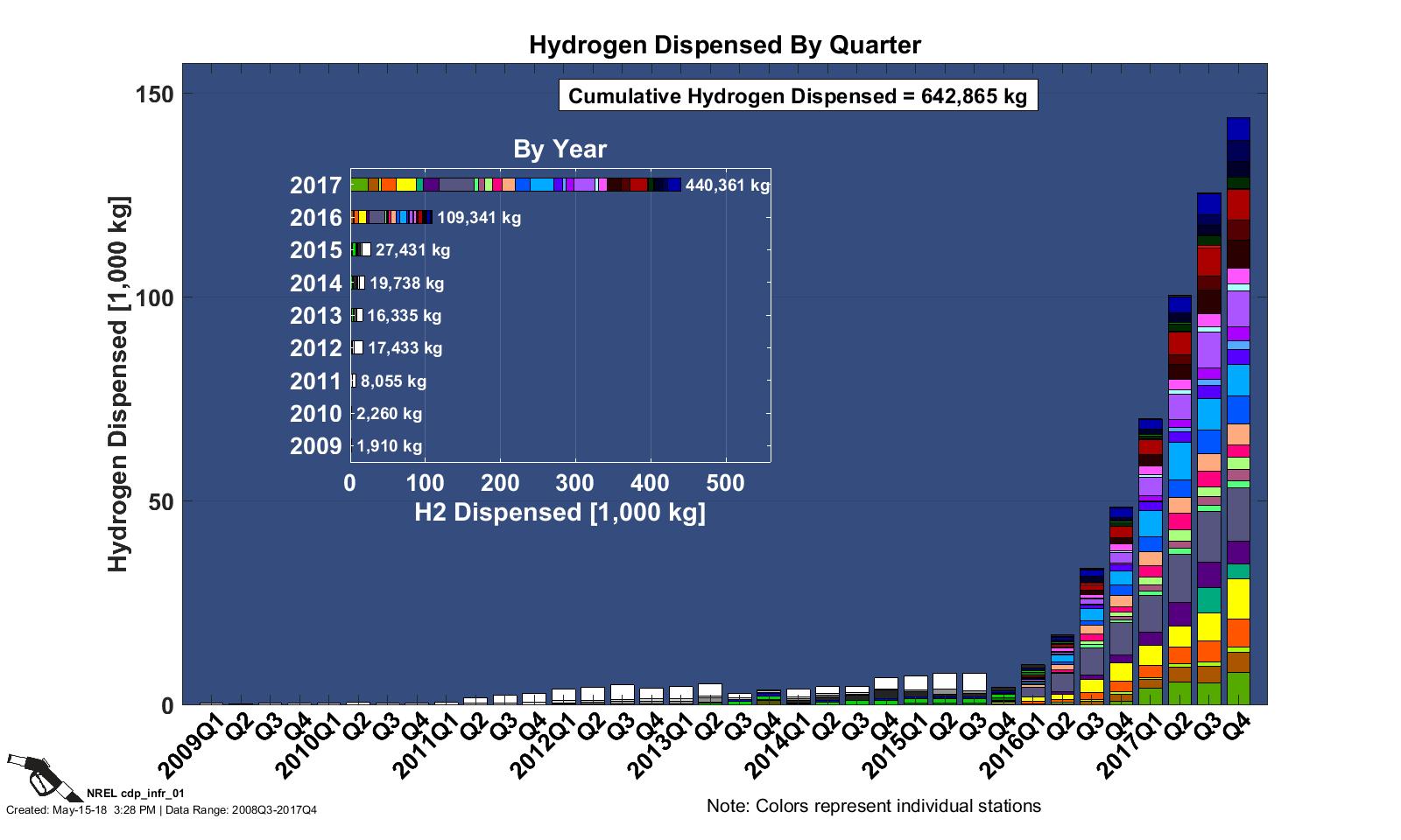 CDP INFR 12, 5/15/18 - Hydrogen Dispensed by Quarter and Pressure