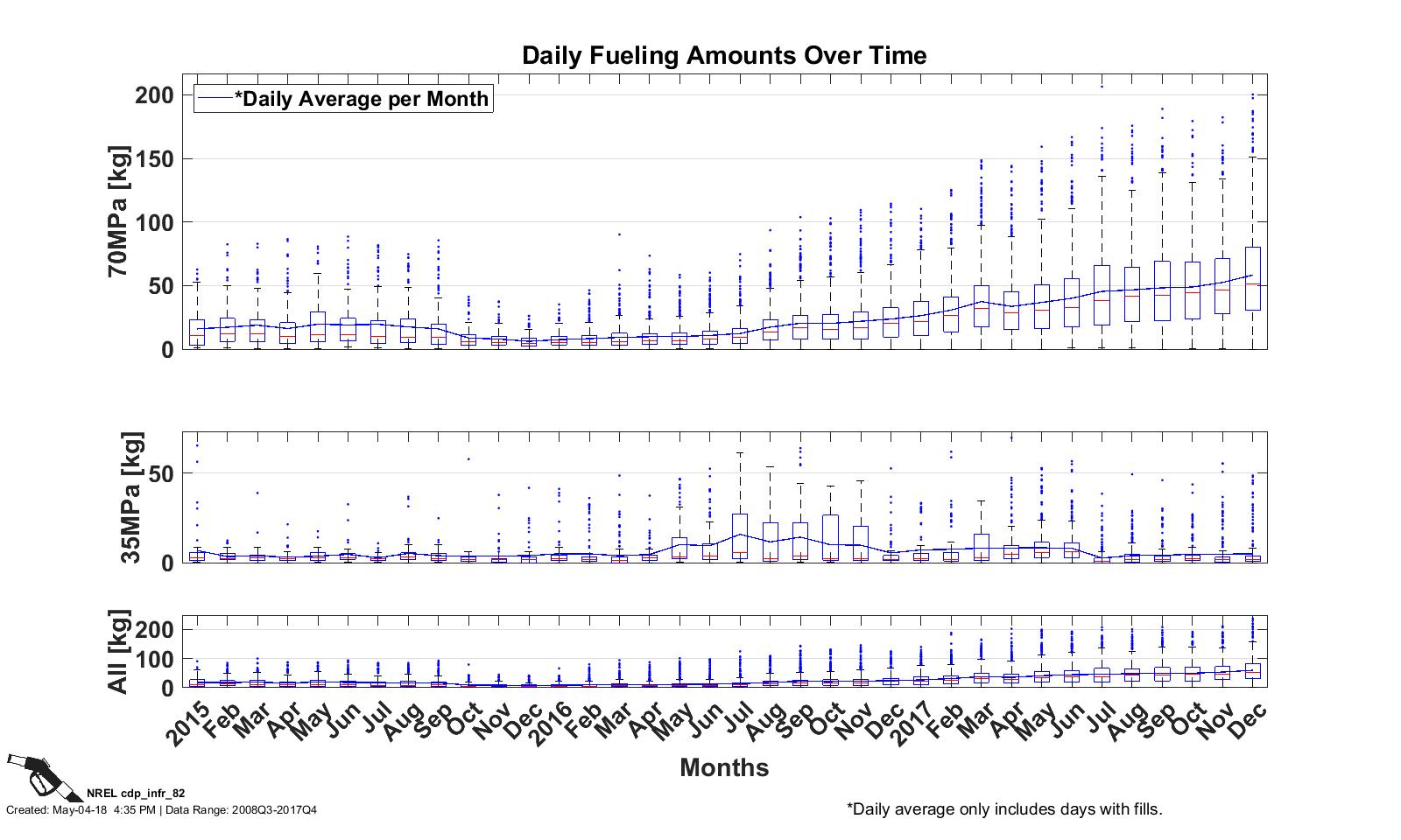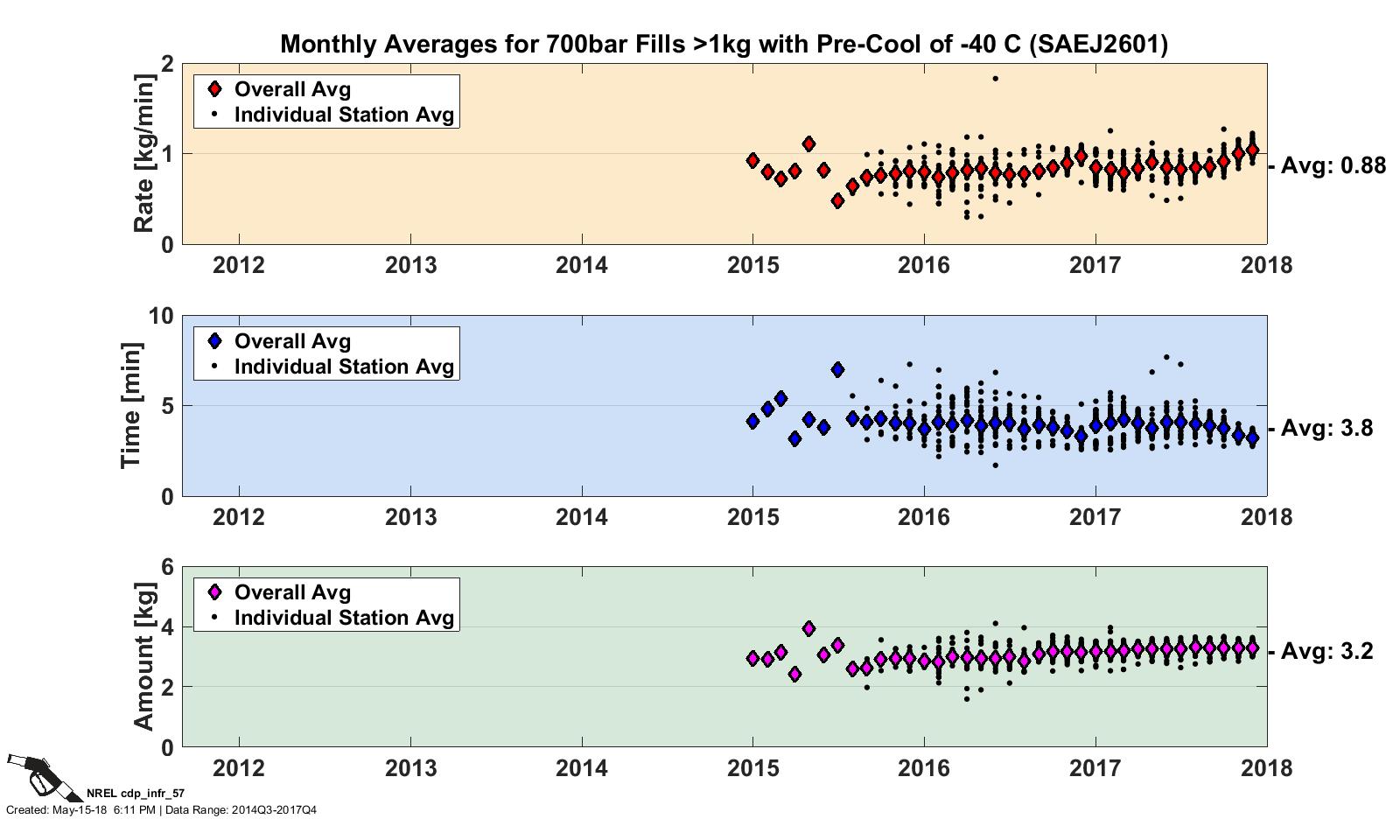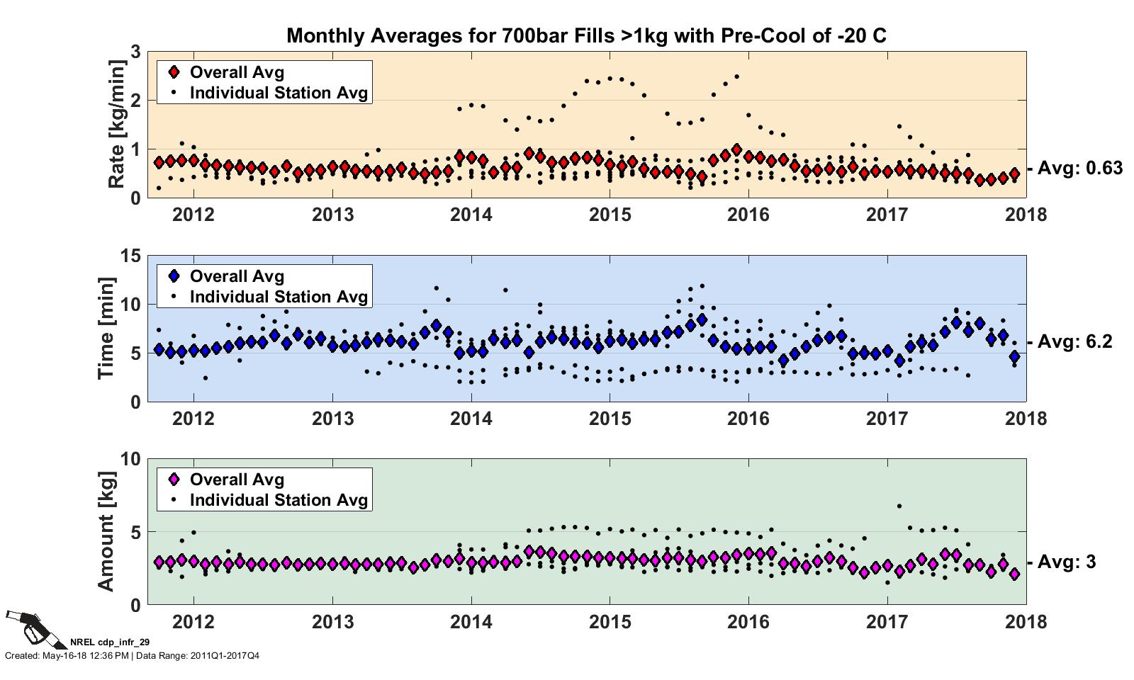 CDP INFR 56, 5/4/18 - Monthly Averages: 700 bar Fills >1 kg with Pre-Cool of -20°C
