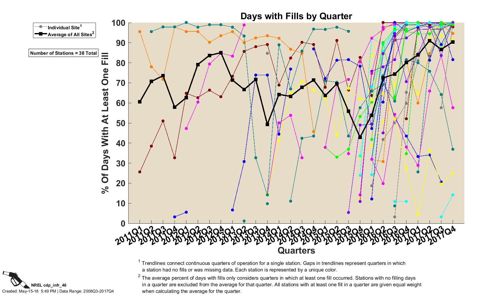 CDP INFR 45, 5/15/18 - Days with Fills by Quarter