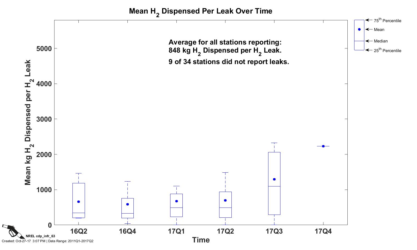 CDP INFR 62, 10/27/17 - Mean Hydrogen Dispensed per Leak Over Time