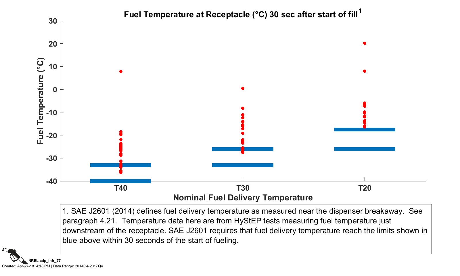 CDP INFR 57, 5/15/18 - Fuel Temperature at Receptacle 30 s After Start of Fill