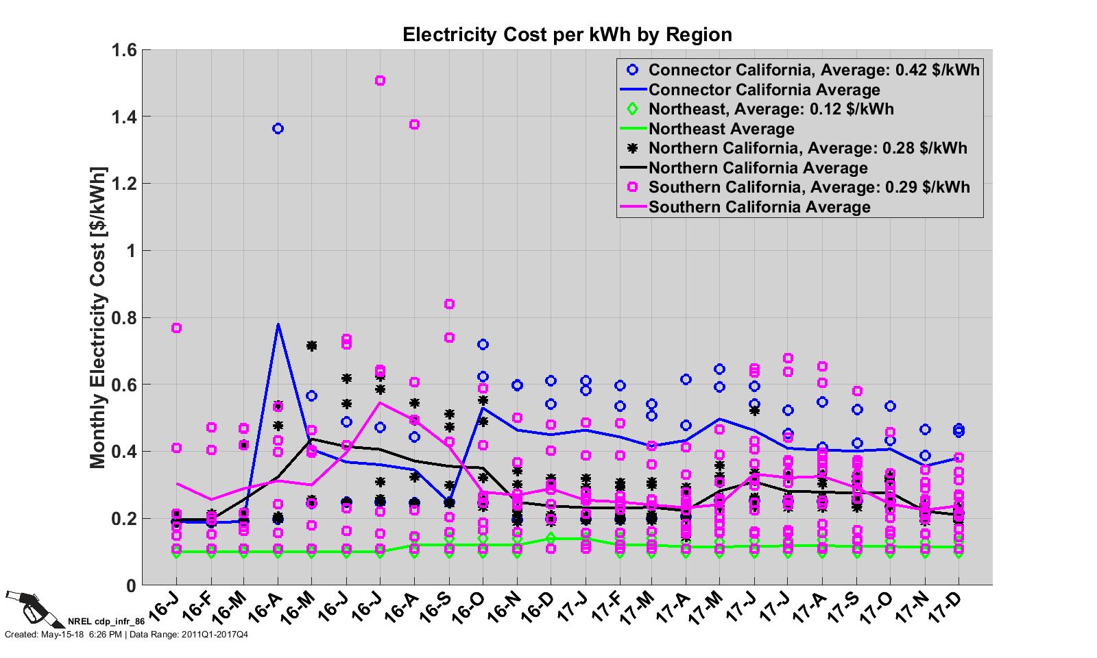 CDP INFR 85, 5/15/18 - Station Electricity Cost per kWh by Region