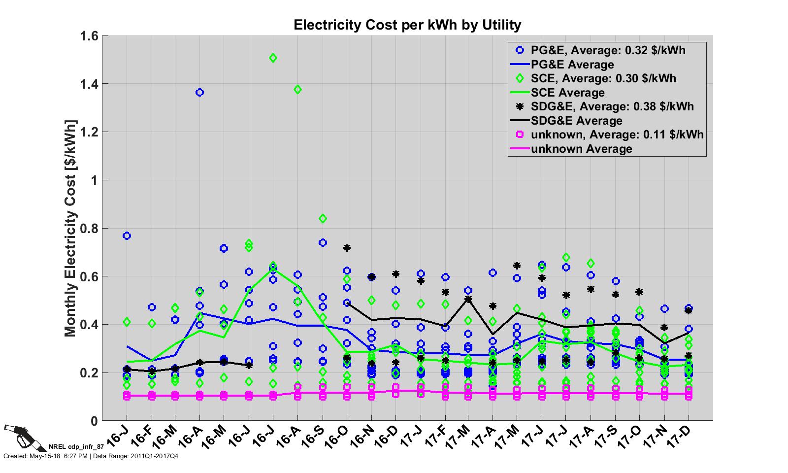 CDP INFR 86, 5/15/18 - Station Electricity Cost per kWh by Utility