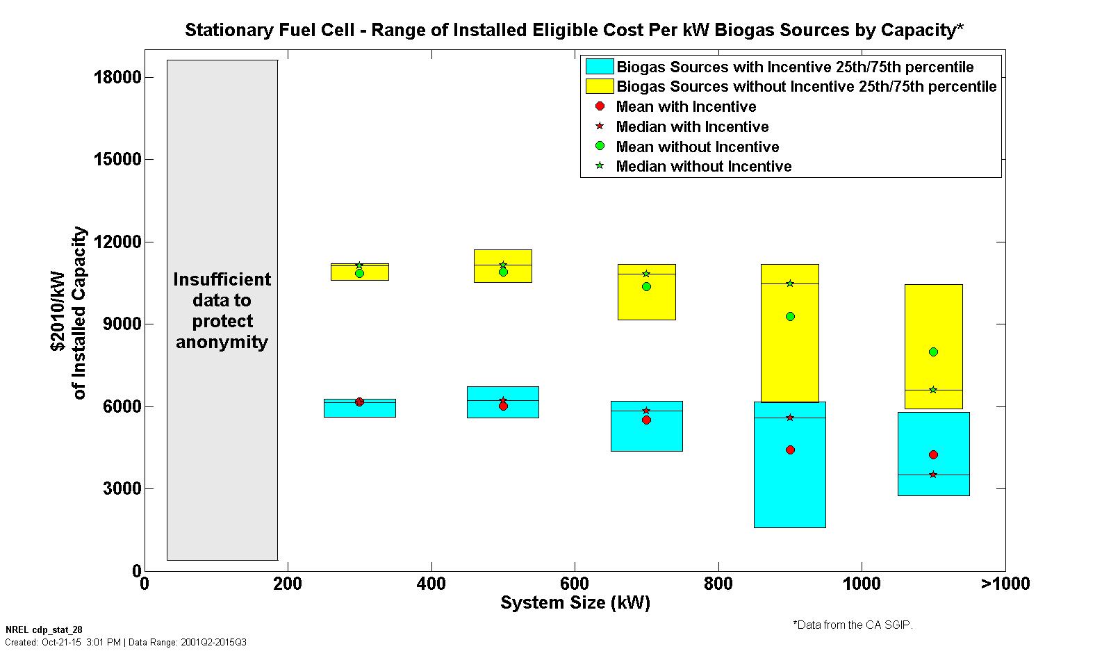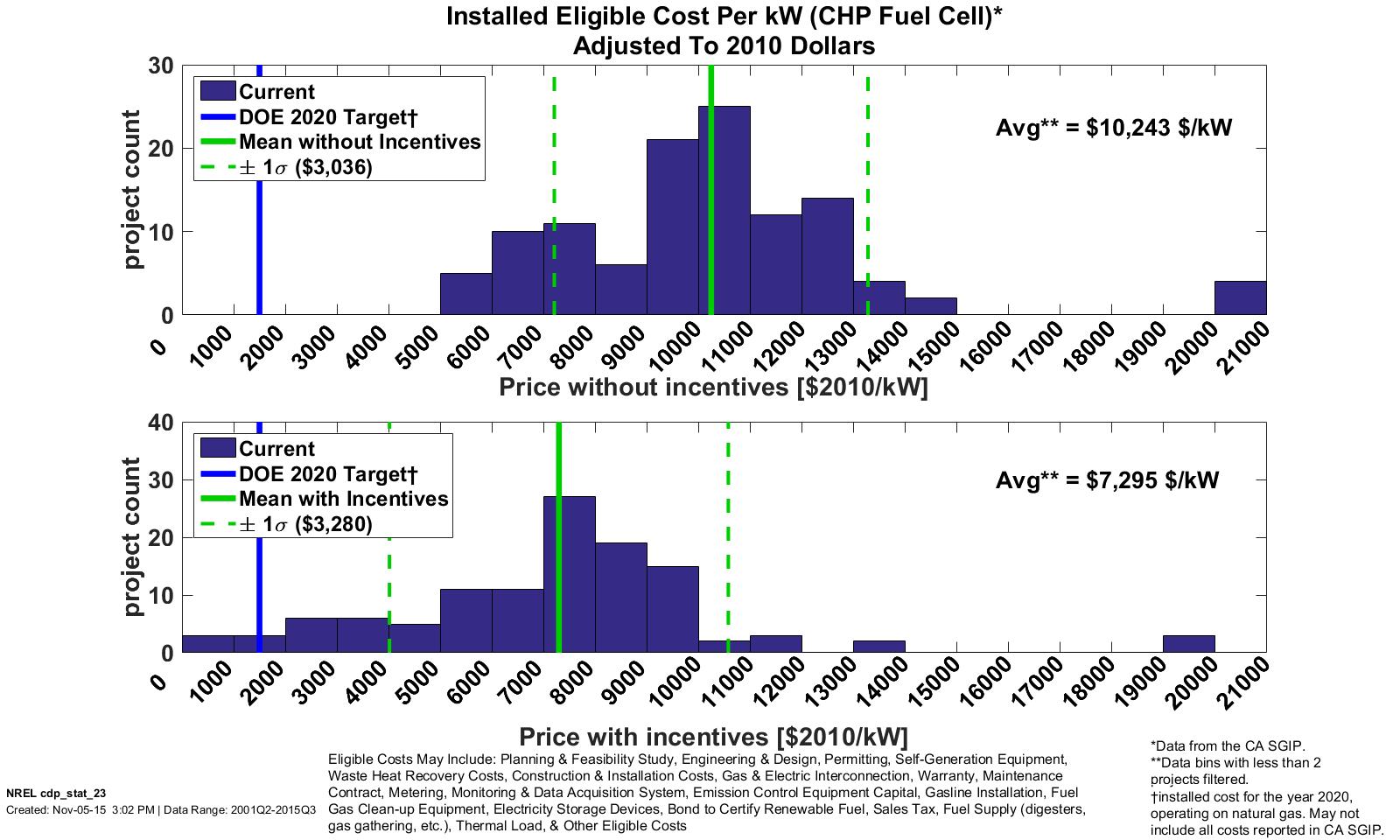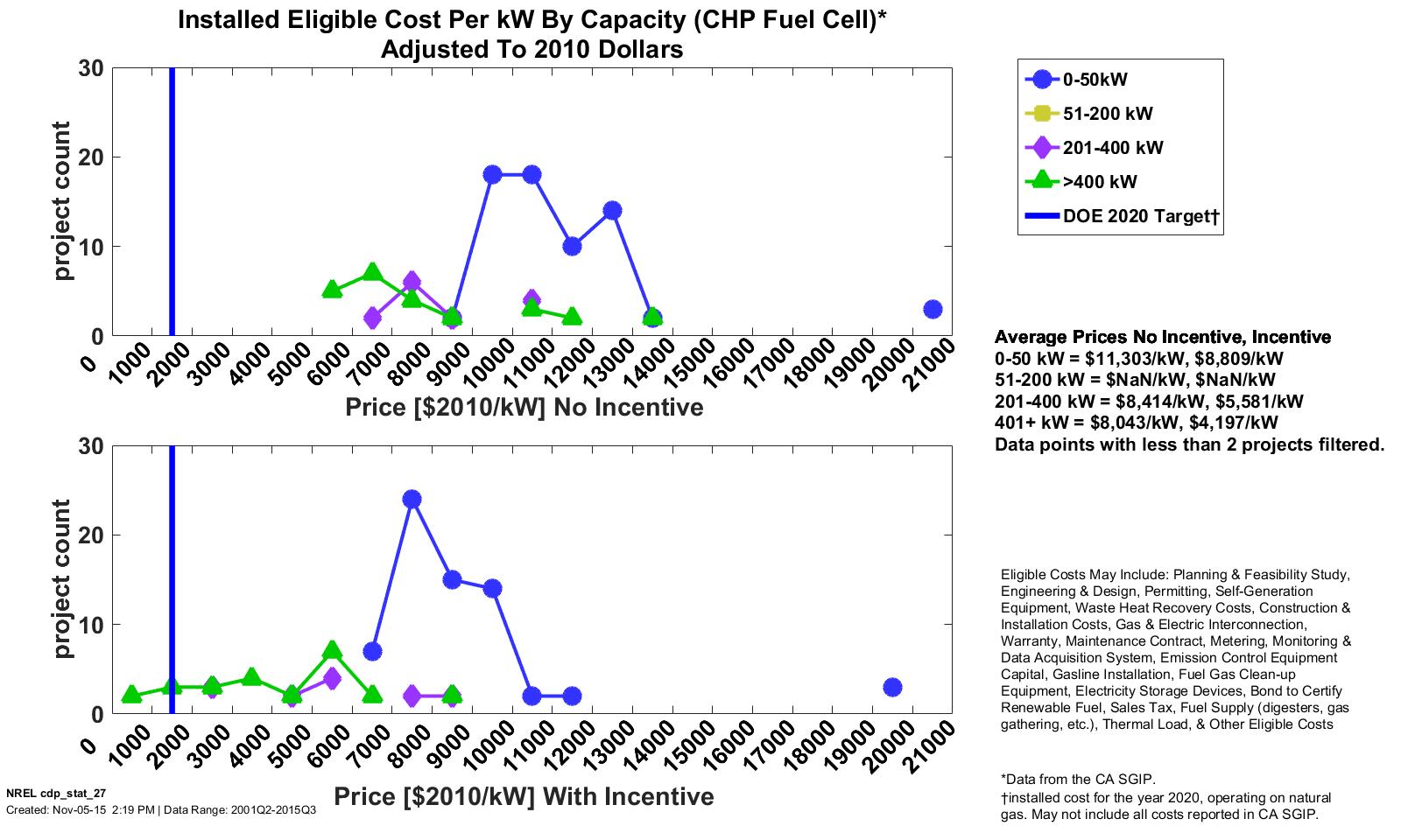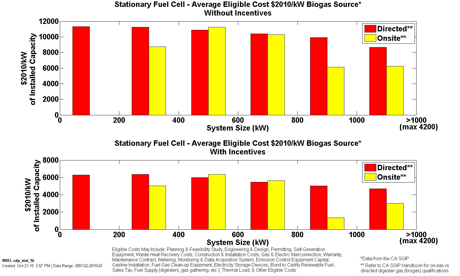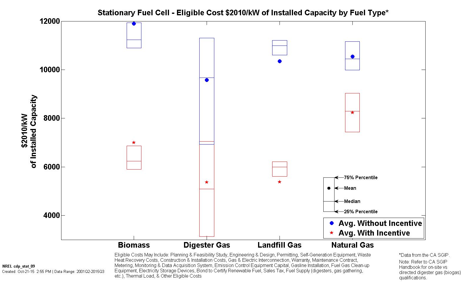Stationary Fuel Cell Install Price by Fuel Type with and without Incentives