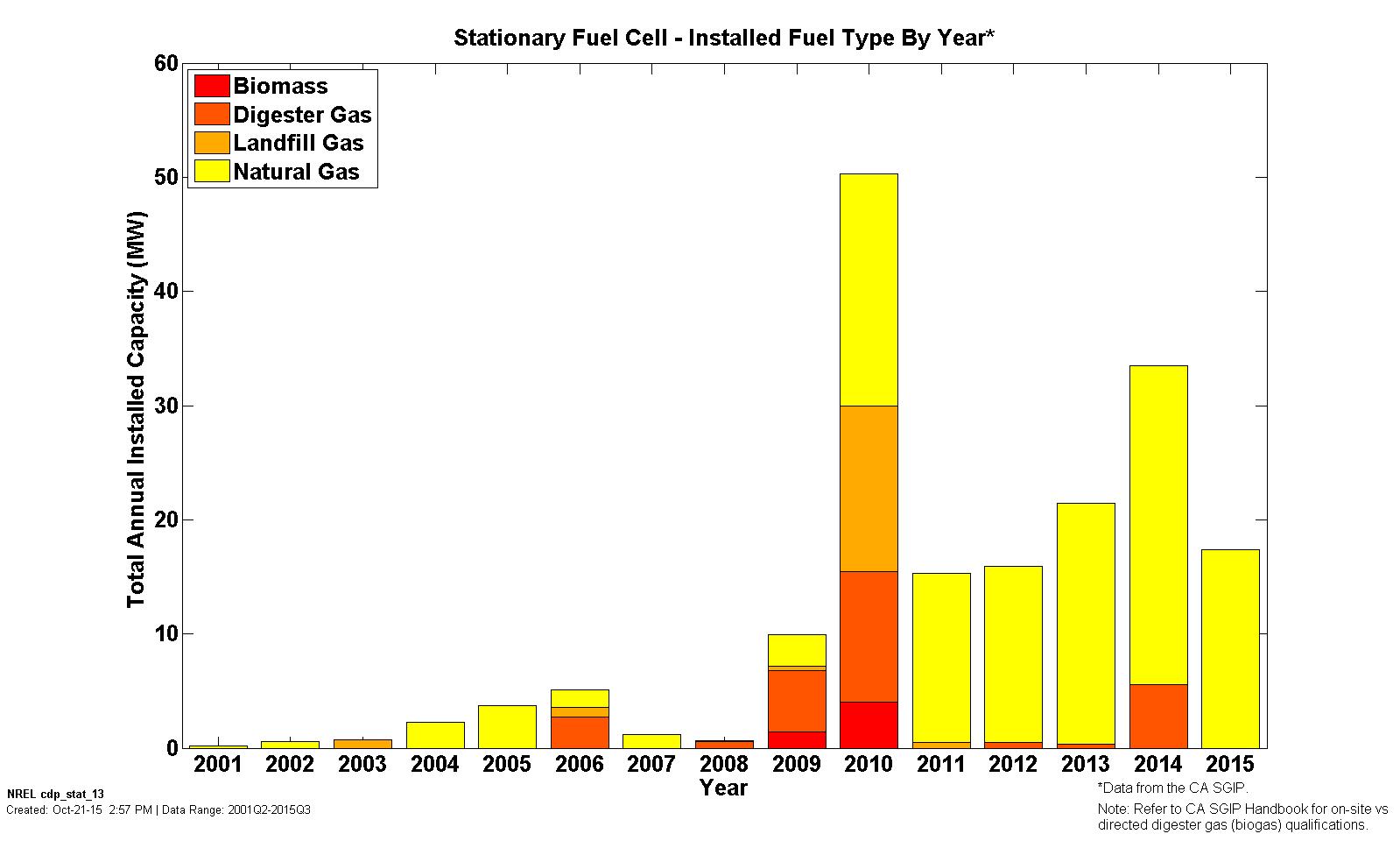 Stationary Fuel Cell System Count and Capacity by Fuel Type