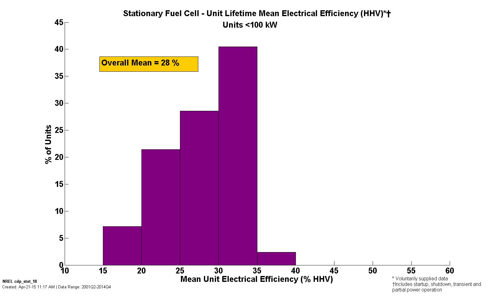 Mean Unit Lifetime Electrical Efficiency (%HHV) for Units <100 kW