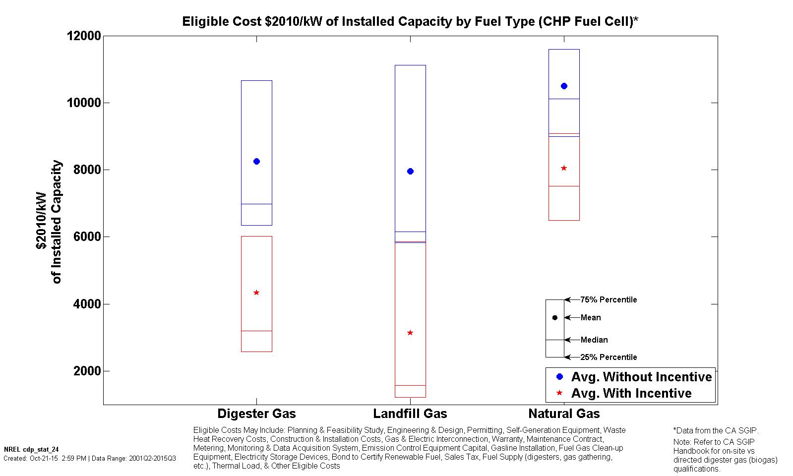 Eligible Cost By Fuel Type with and without Incentives (CHP Fuel Cells)