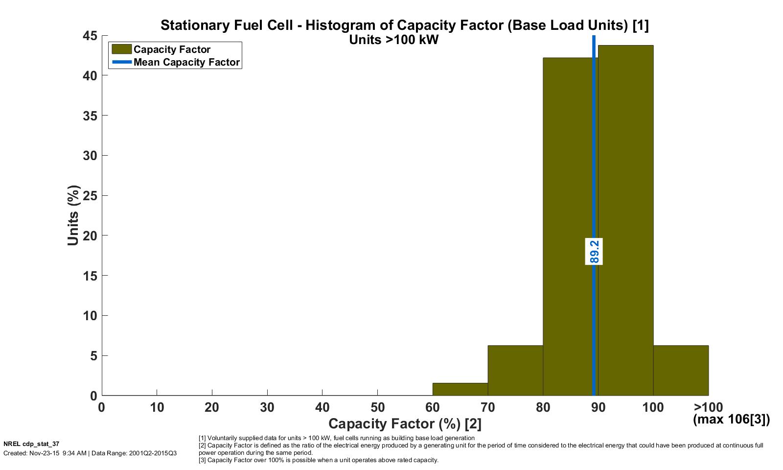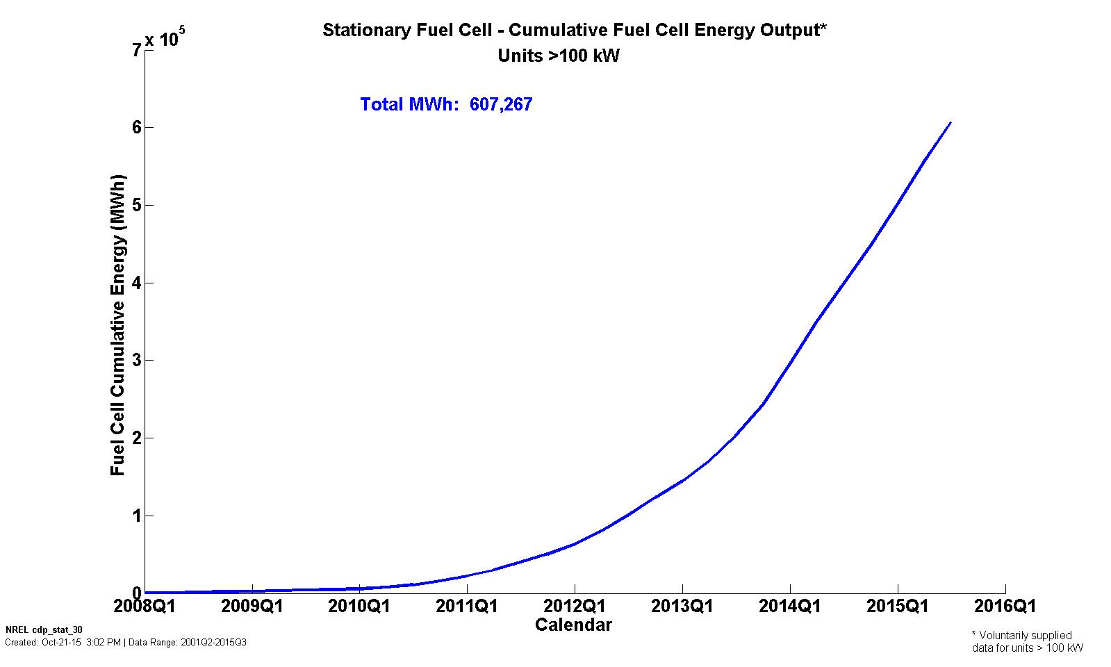 Cumulative Fuel Cell Output of Voluntarily Supplied Data for Units >100 kW