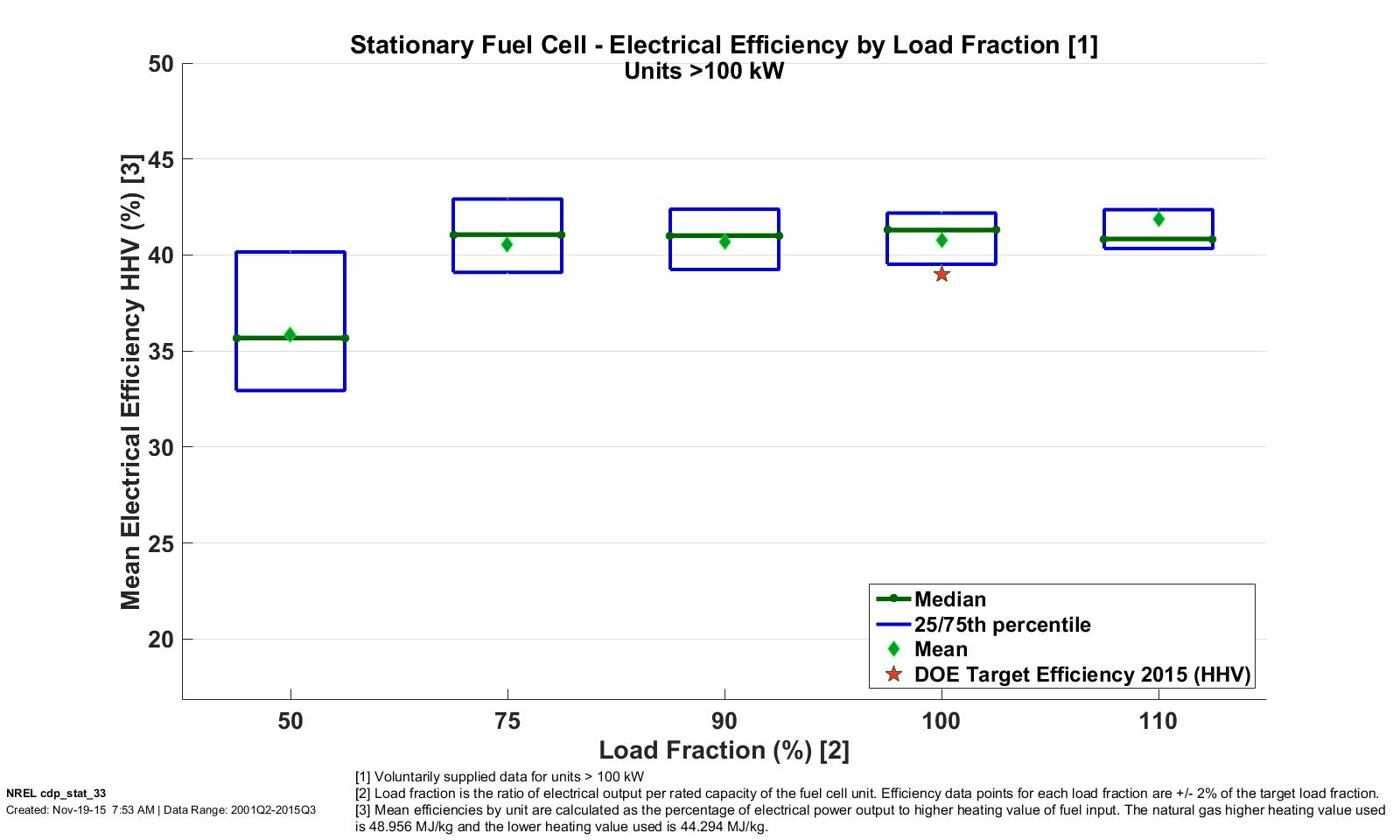 Electrical Efficiency by Load Fraction for Units >100 kW