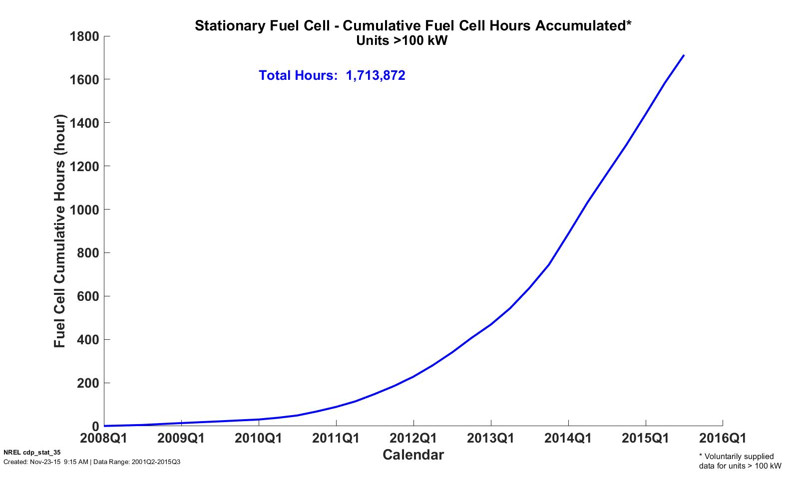 Cumulative Fuel Cell Hours Accumulated for Units >100 kW