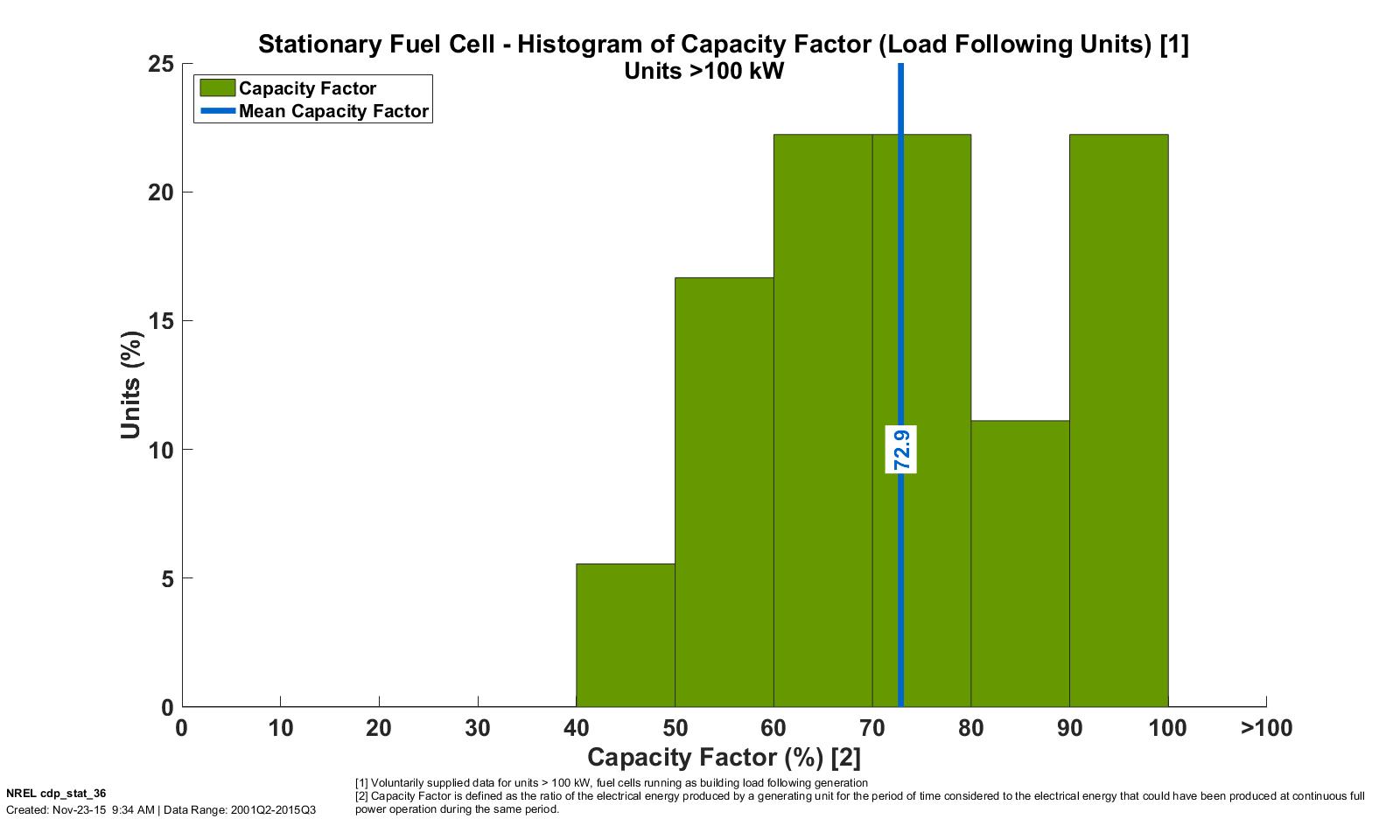 Histogram of Capacity Factor for Load Following Units >100 kW