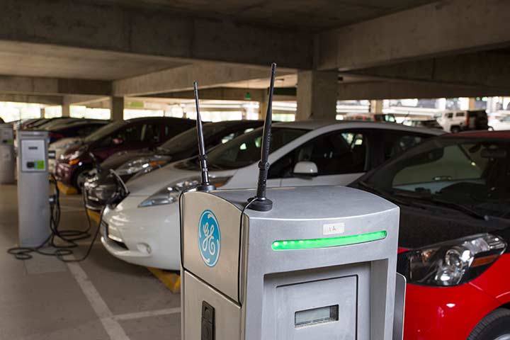 Electric vehicle charging station at NREL's South Table Mountain parking garage. Search image no. 39203